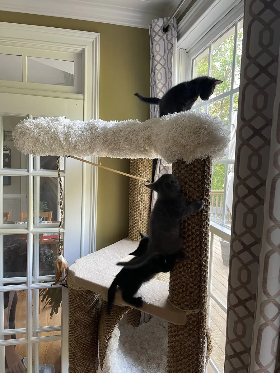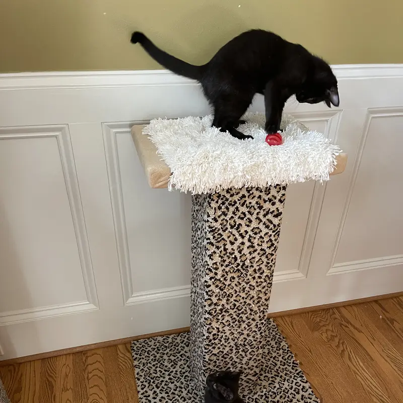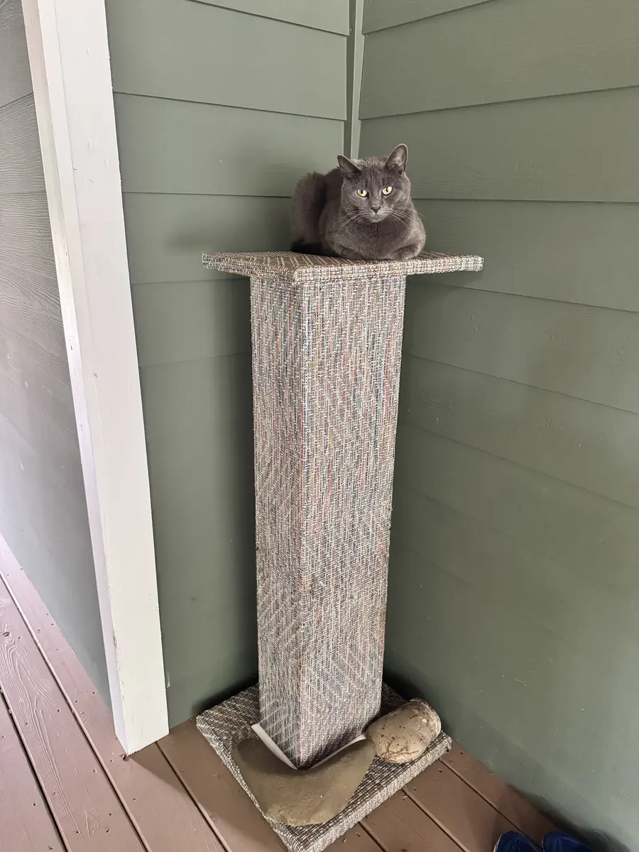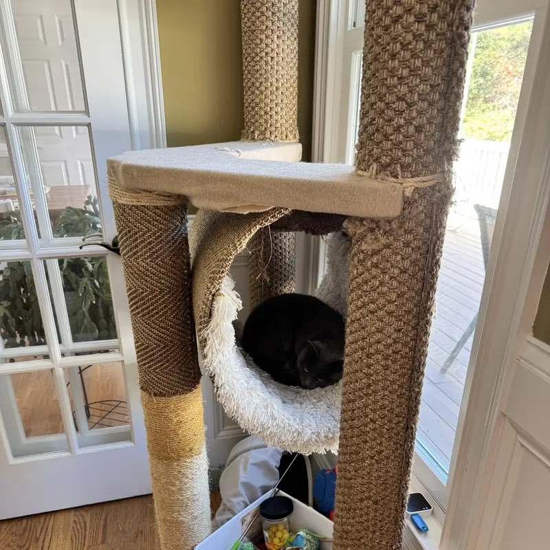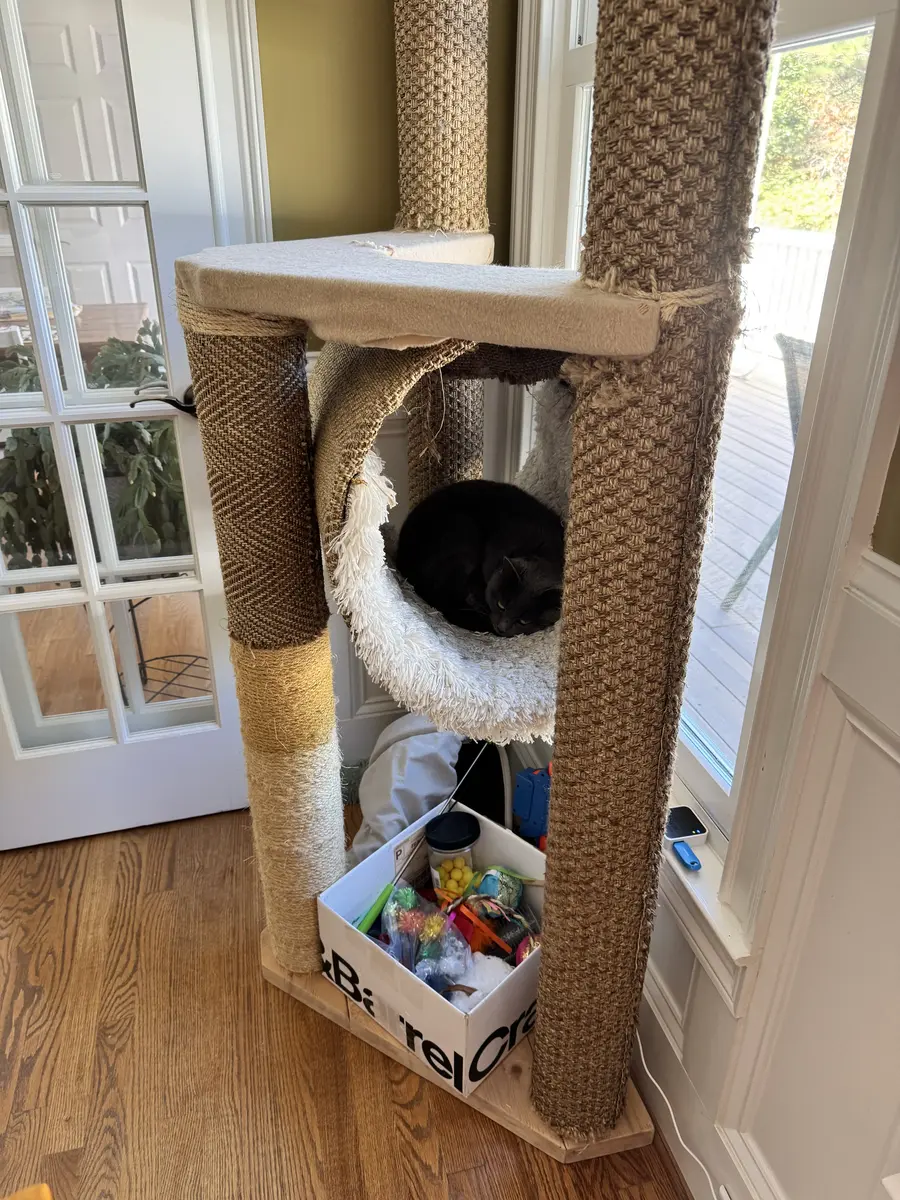 The custom cat tree fits perfectly in our living room, blending beautifully with our decor!