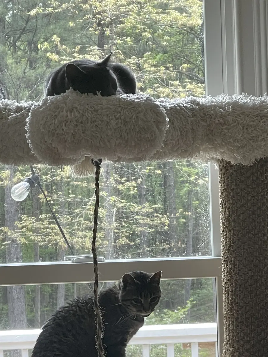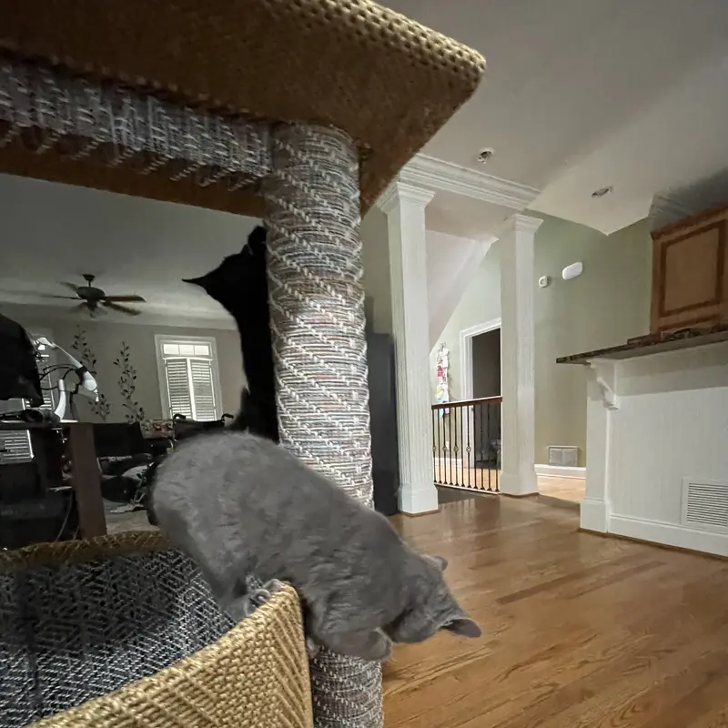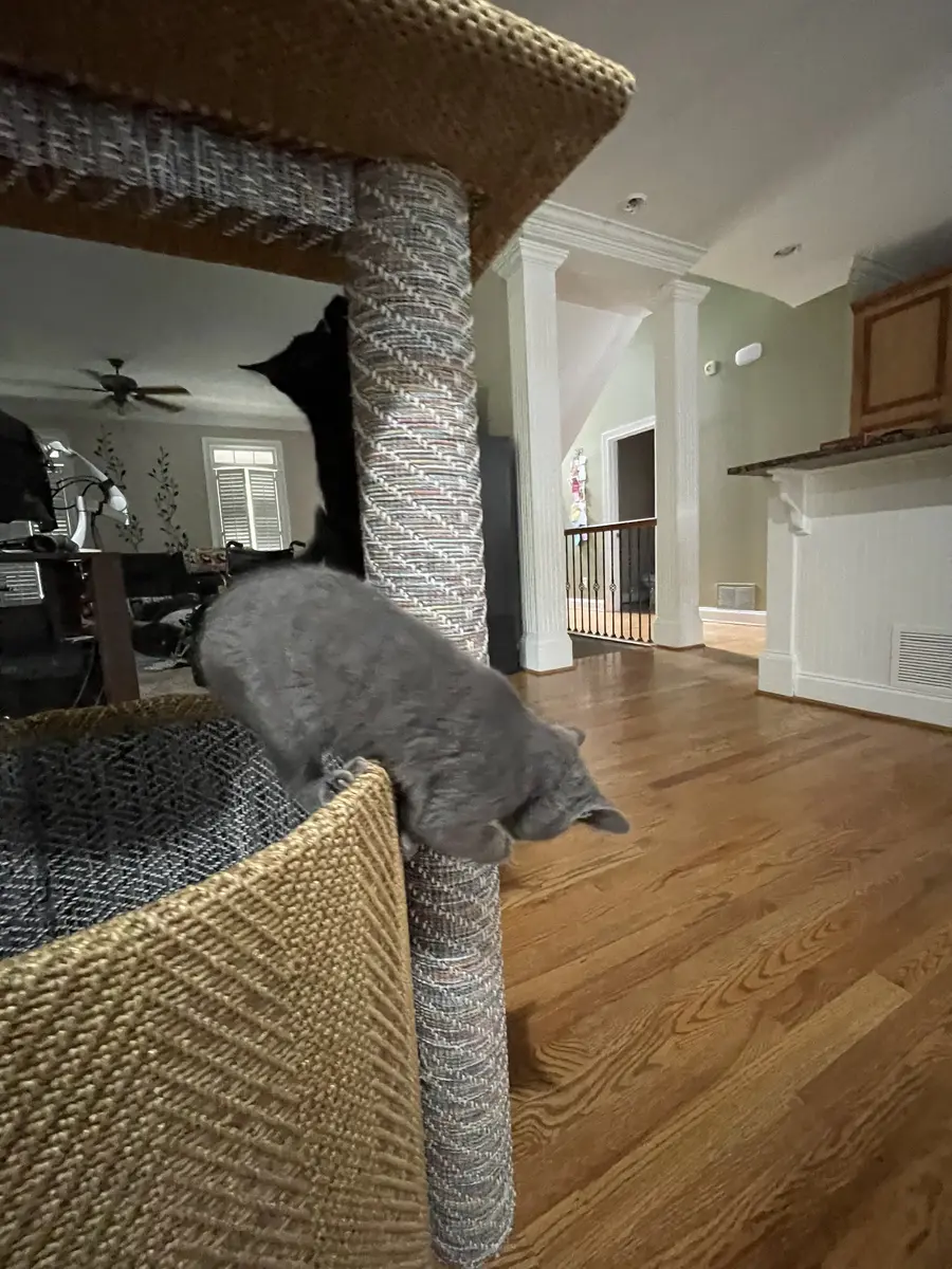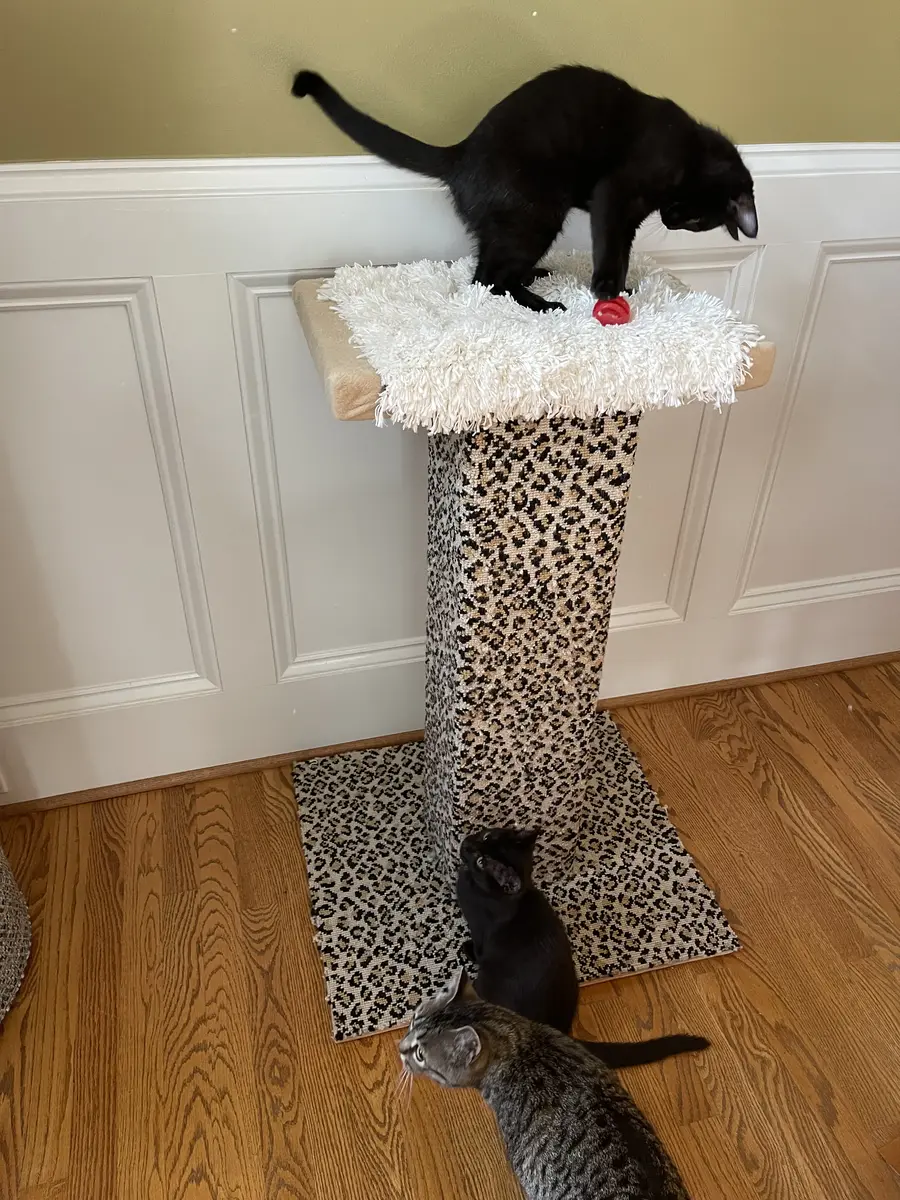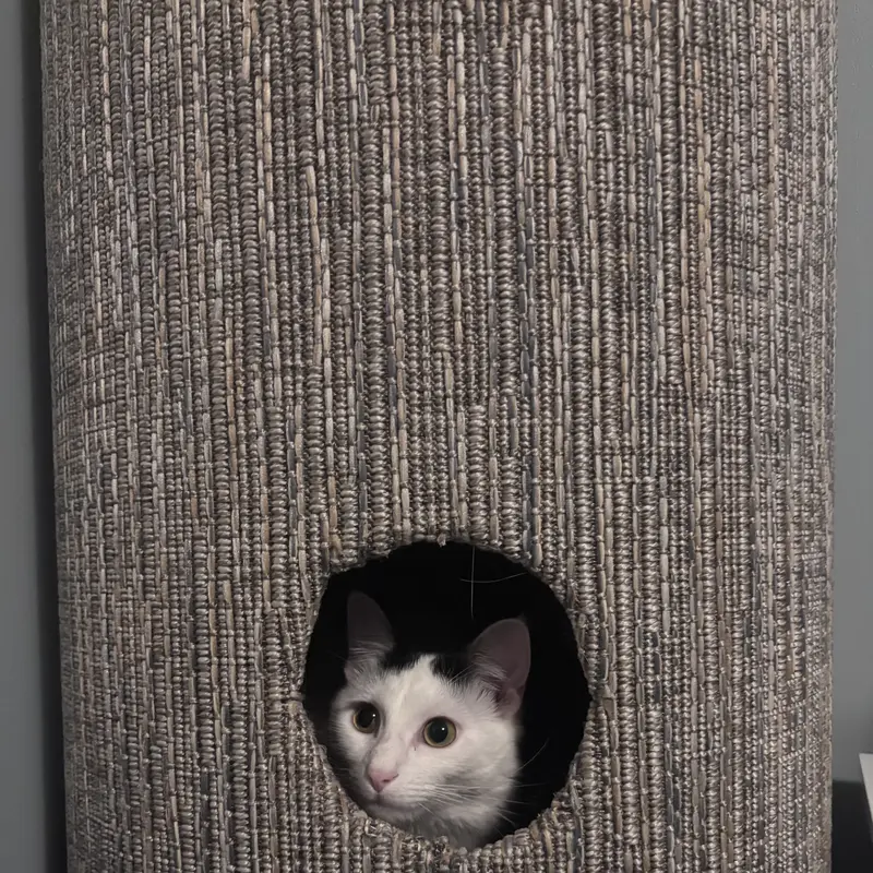 The custom cat tree fits perfectly in our living room, blending beautifully with our decor!