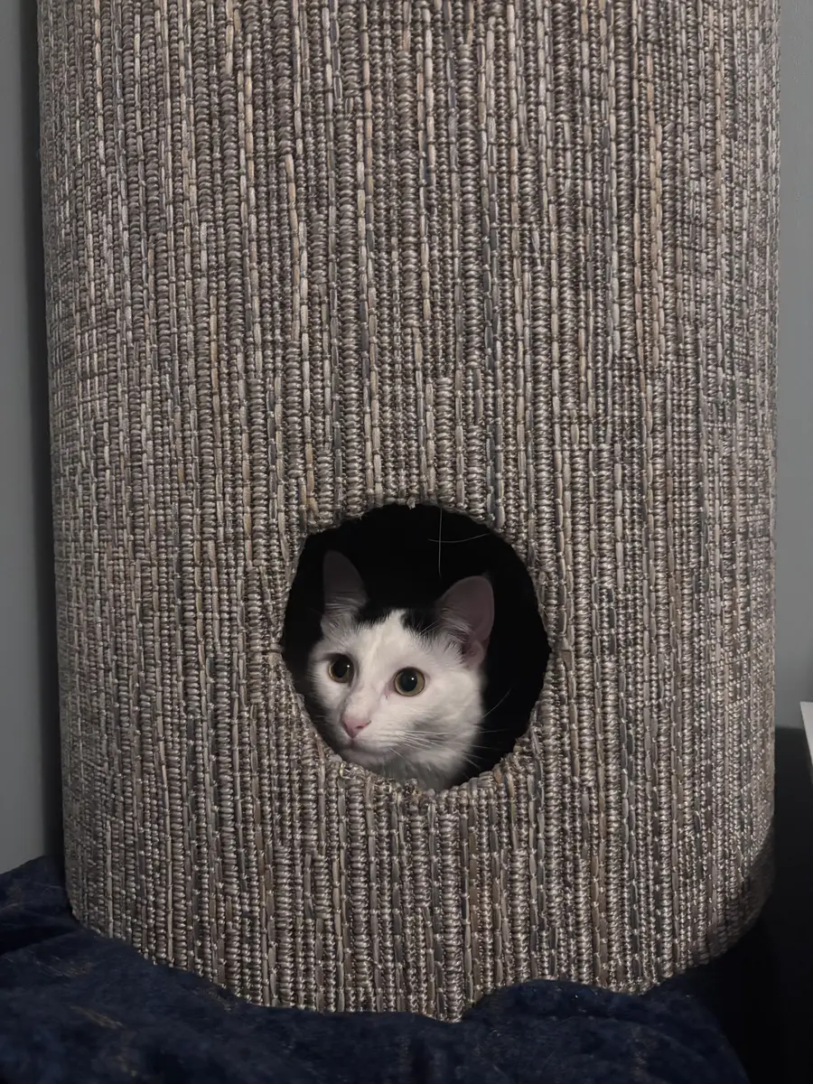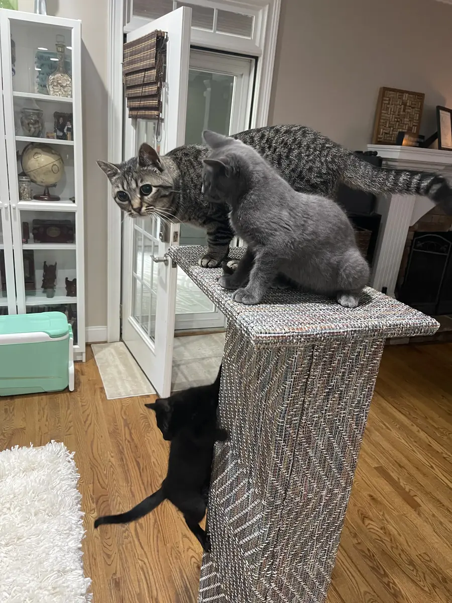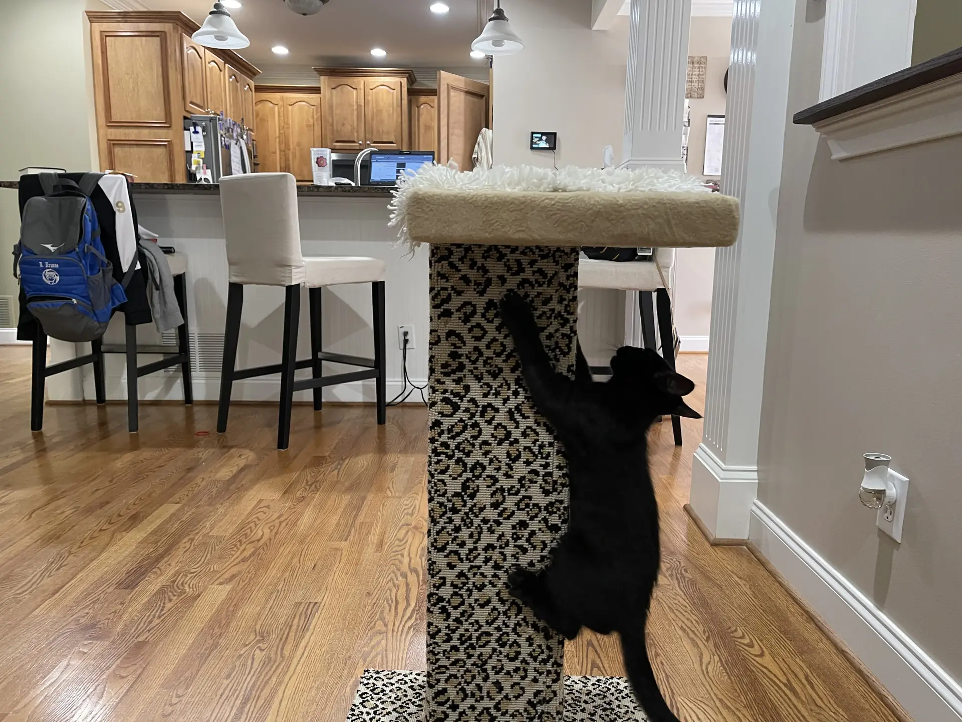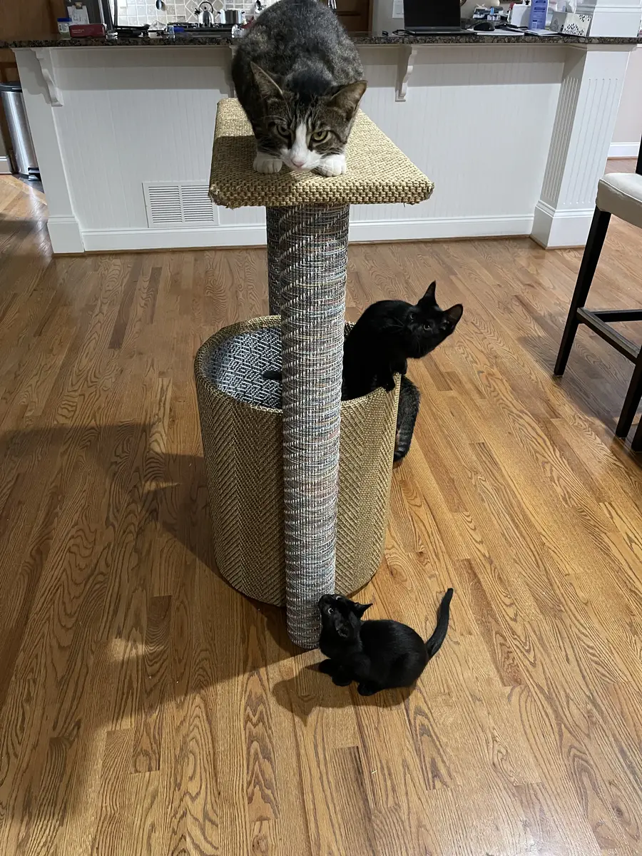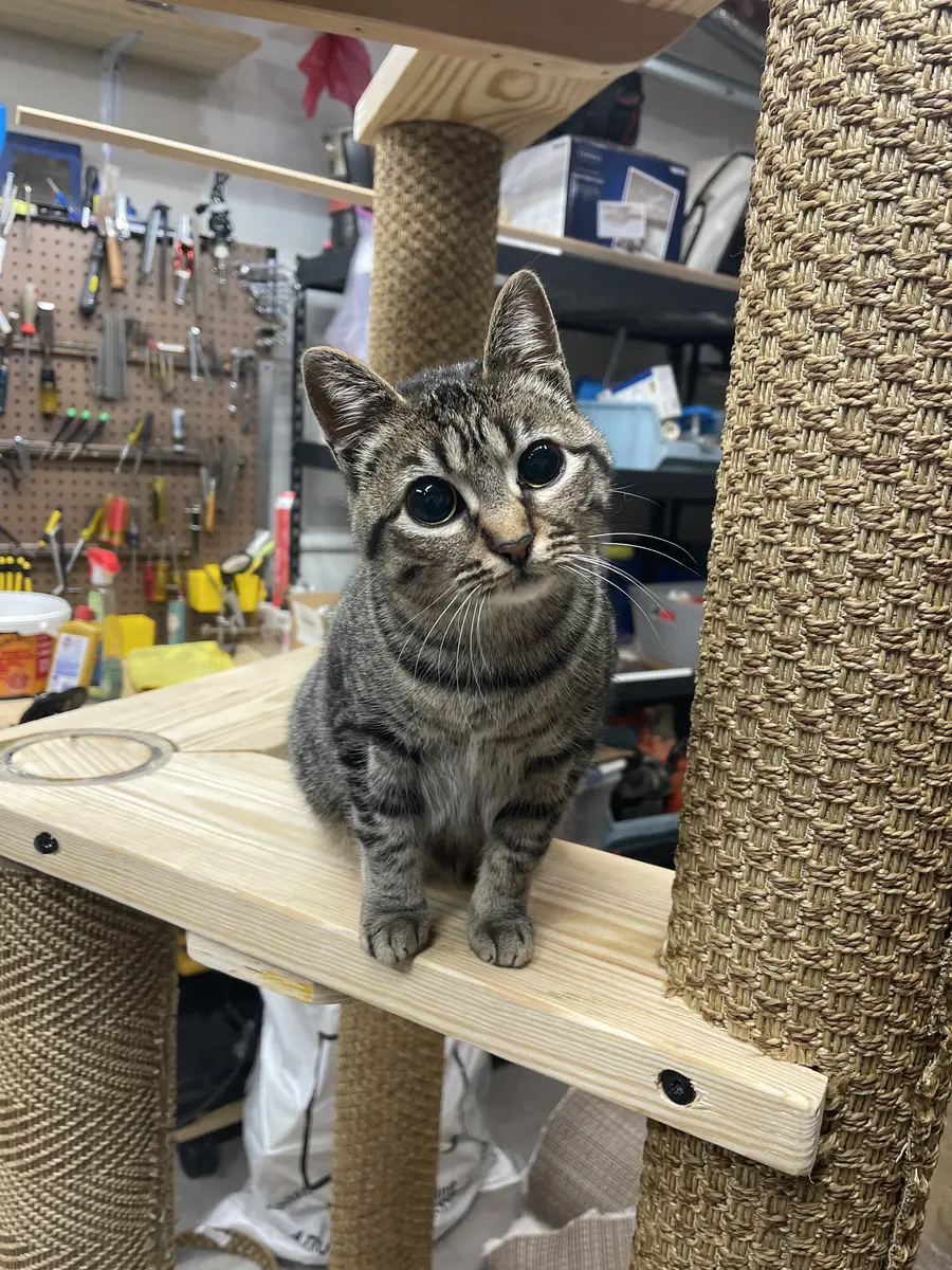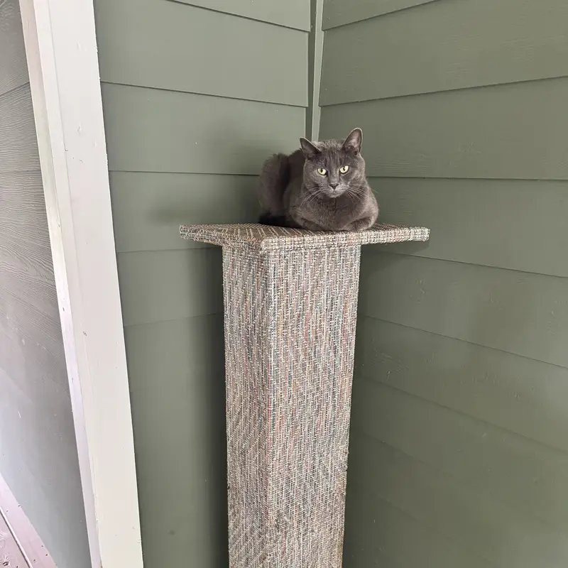 The custom cat tree fits perfectly in our living room, blending beautifully with our decor!